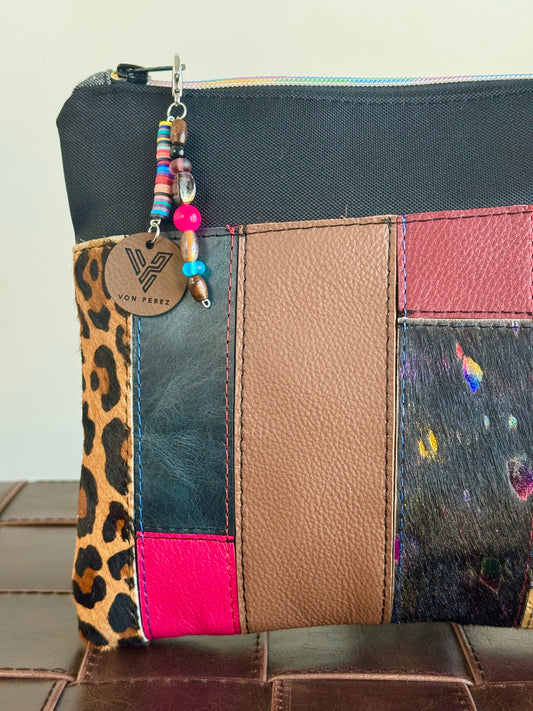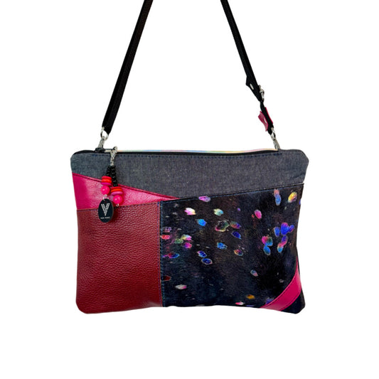 Black Rainbow & Burgundy Leather Large Clutch/Crossbody