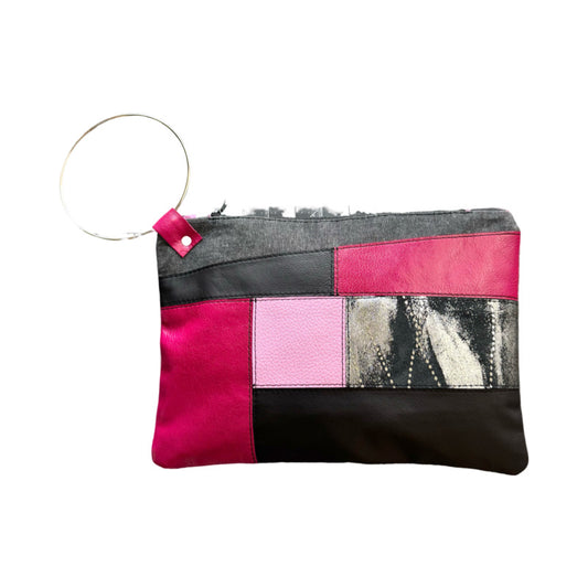 Pink & Black Leather Large Ring Clutch