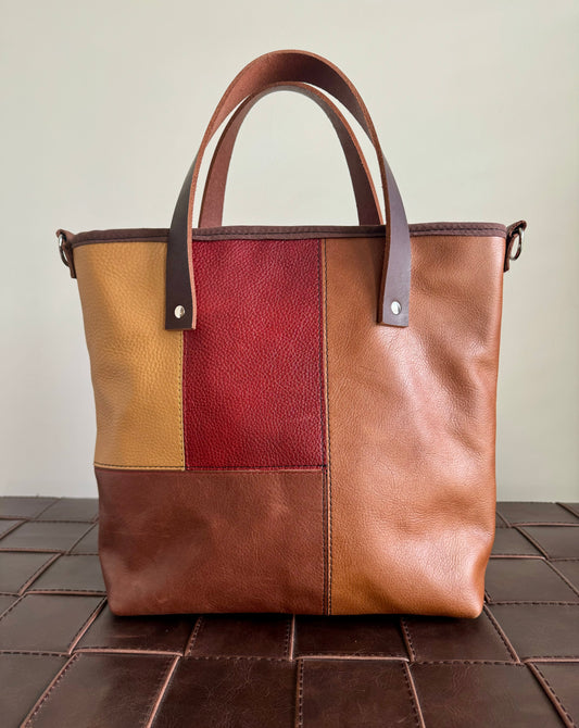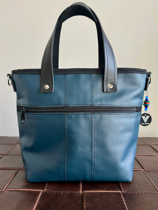 SALE - Blue and Teal Leather Patchwork Tote/Crossbody