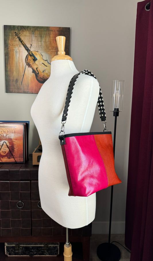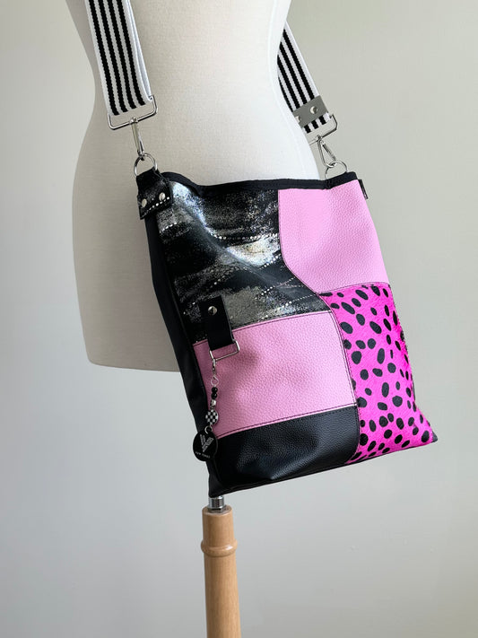 25% OFF Pink & Black Leather Patchwork Hobo
